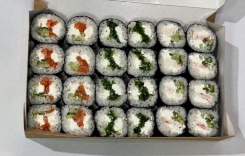 - ролл "Футомак с лососем": сливочный сыр, лосось, огурец - 8 шт. - ролл "Футомак с чукой": сливочный сыр, чука - 8 шт. - ролл "Футомак с крабом": сливочный сыр, снежный краб, огурец - 8 шт.