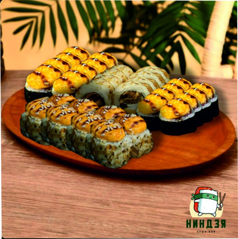 🍣 Мини ролл Запеченный Сяке: рис, нори, лосось, соус сырный, терияки, кунжут. 155 г