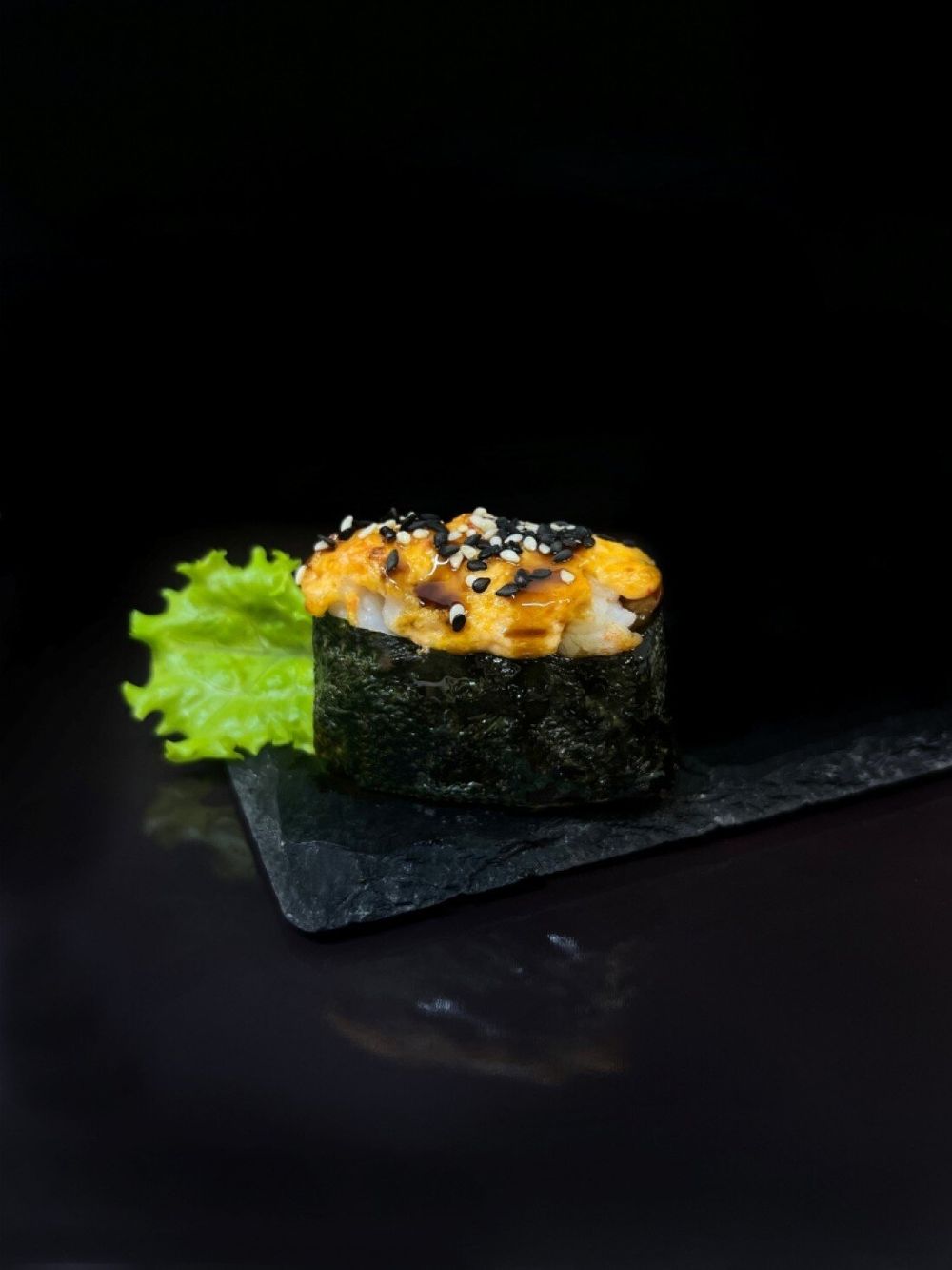 Рис, нори, снежный краб, соус спайси, соус сырный