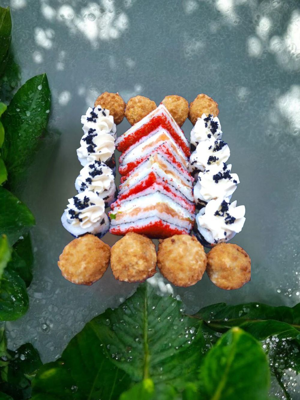 🍣Терияки стар: рис, нори, сыр, лосось, огурец, лук, масаго чёрная. 🍣Сэндвич с лососем: рис, нори, сыр, пекинская капуста, лосось, масаго красная. 🍣Шарики темпура с лососем: рис, сыр, сыр моцарелла, терияки, лосось.