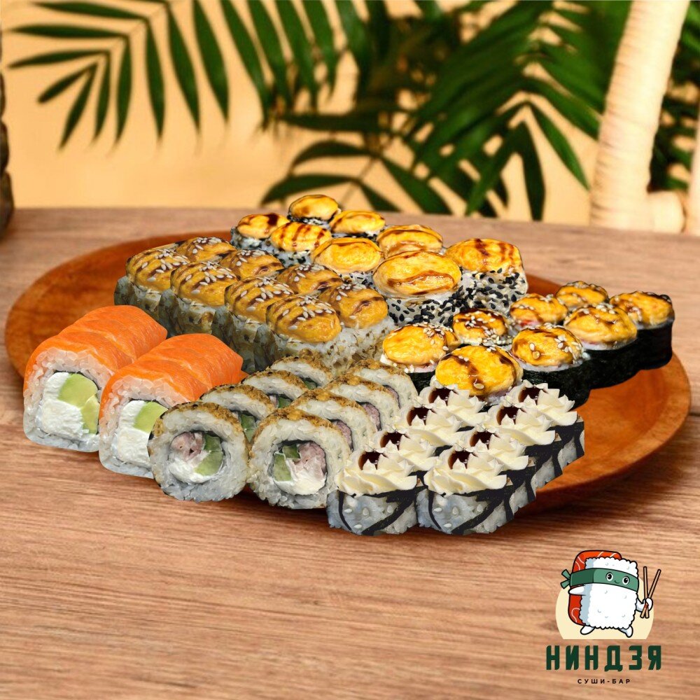 🍣 Филадельфия Тай: Рис, нори, сыр творожный, огурец, лосось-240 гр. 🍣 Запечённый с лососем 8 шт.: Рис, нори, сыр творожный, лосось терияке, сырная шапочка, терияке, кунжут - 290 г 🍣 Ниндзя 8 шт.: Рис, нори, сыр творожный, краб, сливочно-чесночная шапочка, терияке, кунжут, кранч лук - 305 г 🍣 Гриль Бонито с курицей 8 шт.: Рис, нори, сыр творожный, ананас, курица копчёная, стружка тунца, терияке, сырная шапочка - 330 г 🍣 Ямайка 8 шт.: Рис, нори, сыр творожный, краб, такуан, стружка нори, терияки - 275 г 🍣 Лайк 8 шт.: - Рис, нори, бекон, сыр творожный, огурец, лук кранч, терияке - 265 г